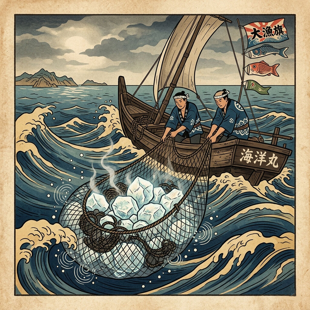 日本海側に多い「表層型」メタンハイドレートは、確かに海底付近に塊として存在しているため、理屈の上では「掬い上げる」という発想は非常に合理的です。しかし、底引き網でそのまま回収するには、「水深」と「相変化」という2つの大きな壁が立ちはだかります。