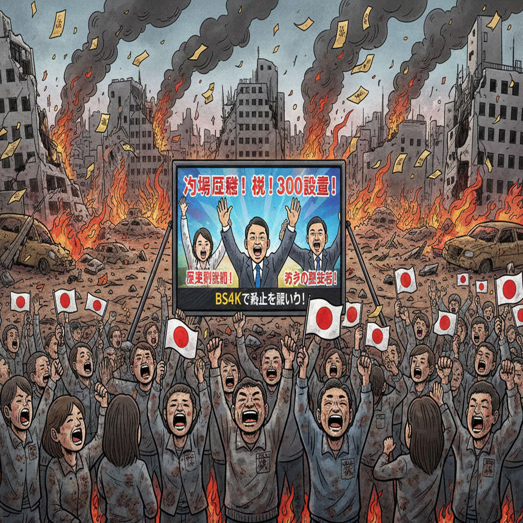 「8Kの虚飾に金を積む愚民たちが、ノイズまみれの『勝利宣言』を崇めている間に、私は5万円のモニターで、加工されない冷徹な数字を読み解く。NHKに1円も払わず、博打(NISA)にも乗らず、雪の中に消えていく国をただ静観するのだ」