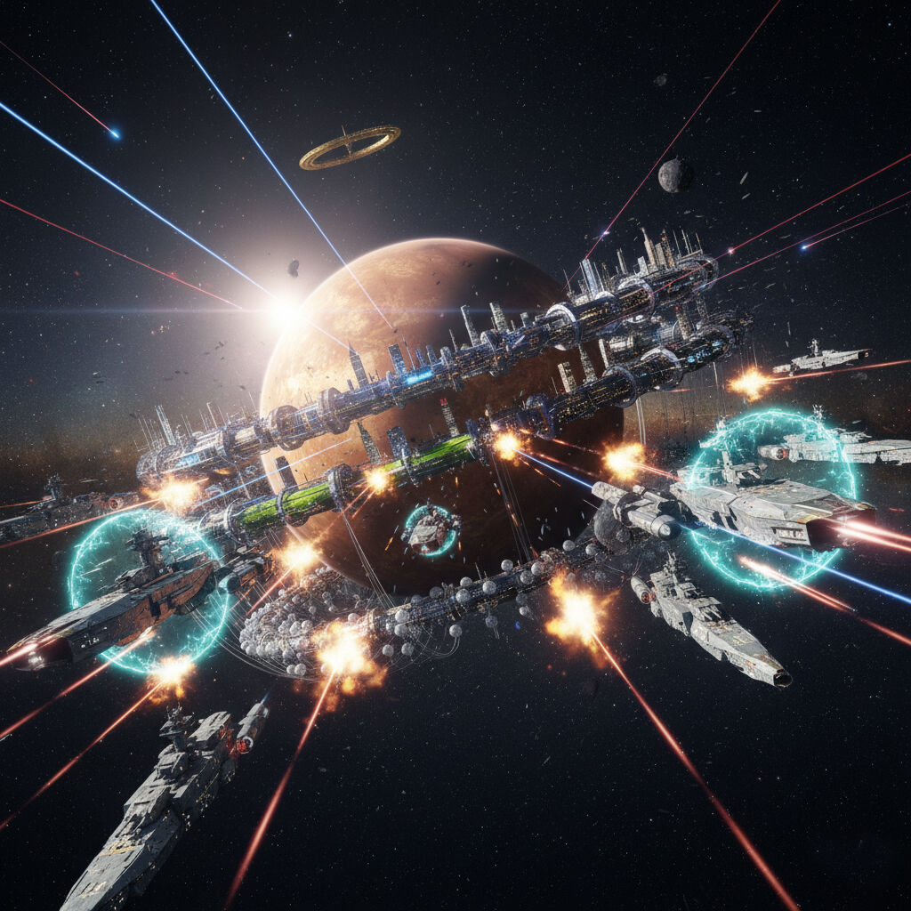 月の砂(長石)の散布: 接近する敵機に対し、ステーションから大量の「月の砂」を高速で散布します。宇宙空間では、ただの砂粒が最強の散弾銃となり、敵の装甲を蜂の巣にします。