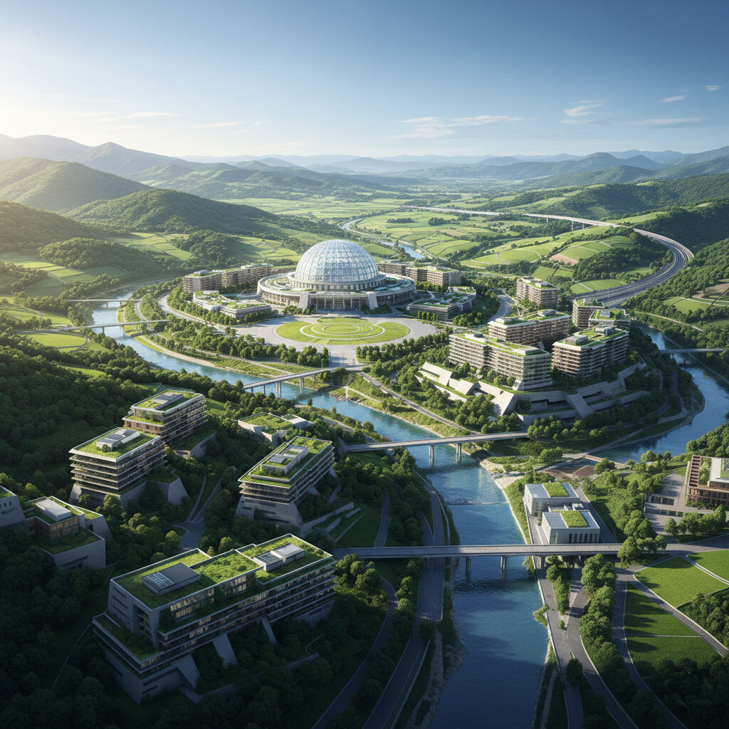 新首都(行政市): 華やかさは不要。極限まで効率化された、災害に強いコンパクトな「事務センターとしての首都」です。