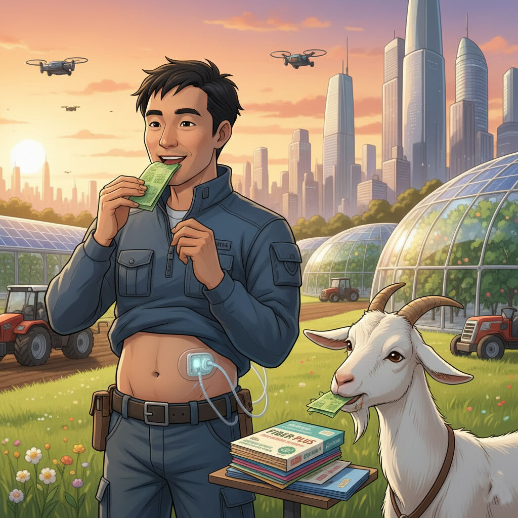 もし未来食として考えるなら、シロアリやヤギが分解する「セルロース」を人間が食べられる形に加工した「高機能食物繊維紙」が考えられます。